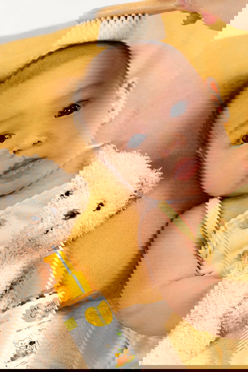 Yes, you read that correctly. Despite not having many hairs, you can gently brush your baby’s scalp to move the flakes on their head.